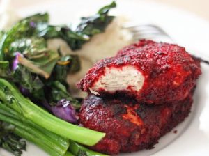 In a large cast iron or frying skillet, melt the red palm oil. Heat the red palm oil over high heat, then turn the heat to medium. In a small bowl, mix the salt and spices. Dust the chicken with the spice mixture. Place the chicken in the skillet and cover with a lid. Cook each side of the chicken until well browned and thoroughly cooked. Drain and serve with Coconut Jasmine Rice and Red Palm Oil veggies.